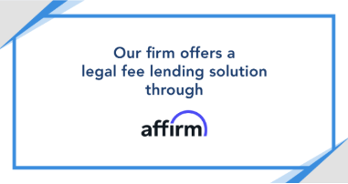 Legal fee funding is a new flexible payment option for our clients. Pay Later, powered by Affirm, allows you to pay your legal fees in affordable increments over time. Click here to learn more
